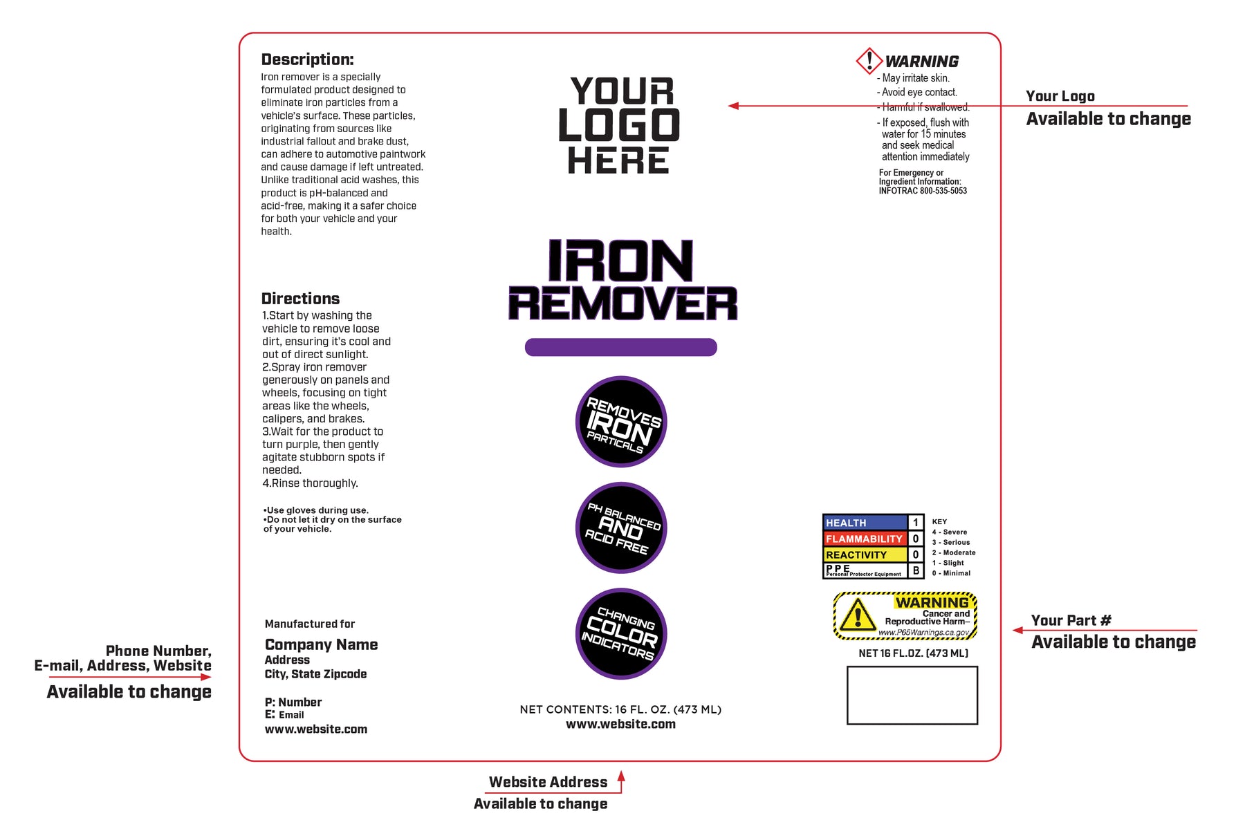 Iron remover is a product that is specially formulated to remove iron particles from a vehicle's surface. Particles of iron can come from industrial fallout, brake dust, and other sources and when it can bond onto an automotive paintwork. When iron bonds onto the surface of a vehicle, it can cause damage if untreated. This product is a safe alternative to acid washes because it is pH balanced and acid-free – meaning it is better for not only your vehicle, but your health as well.