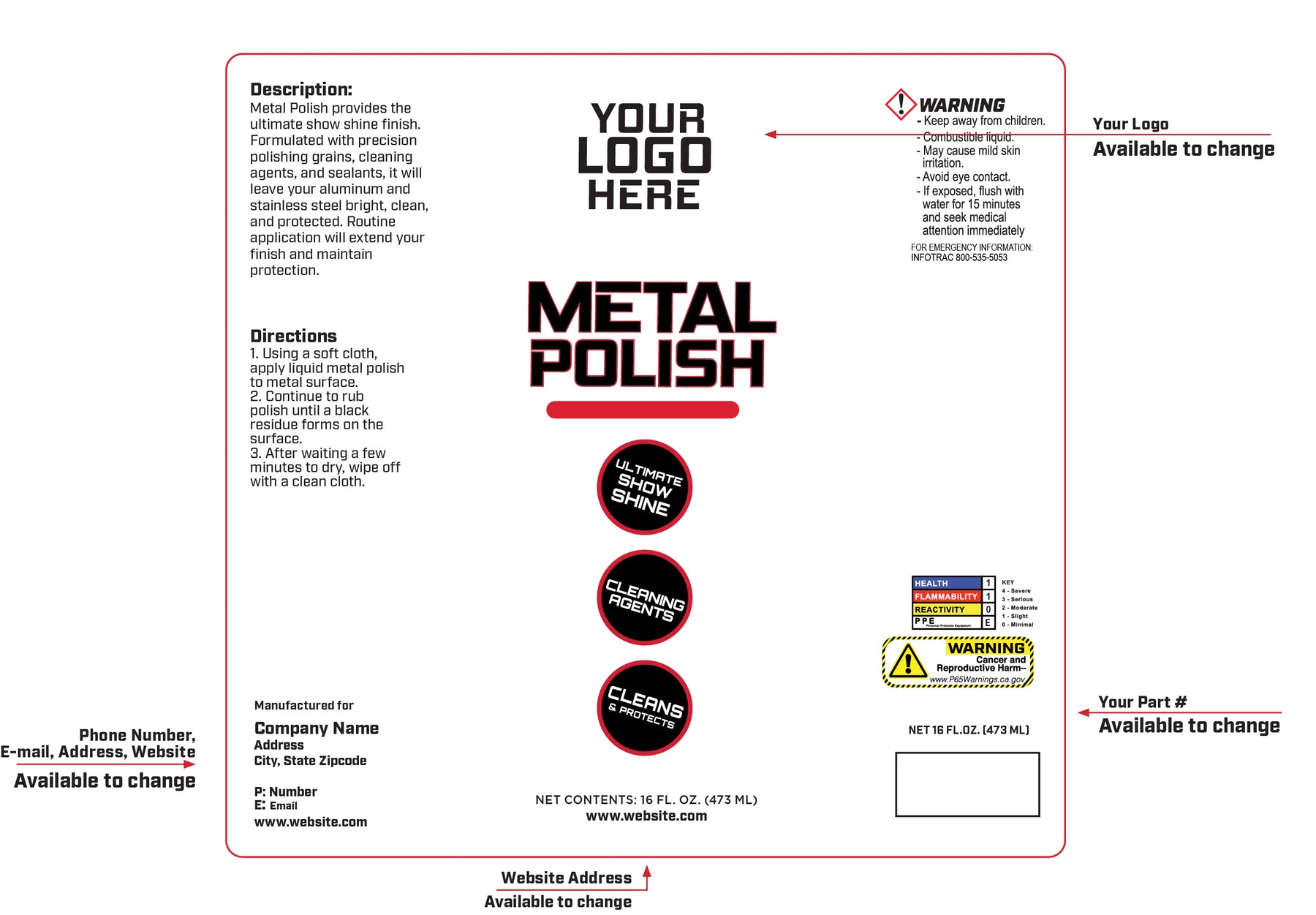 Our liquid metal polish is a premium easy to use metal polish that is sure to be a feather in your cap if you are starting your own brand! We use this formulation for LARGE brands in the car care & trucking industries where billet wheels, stainless fenders and aluminum tanks are plentiful! We created a formulation that is easy to apply and work in, then easy to buff off! Many other metal polishes are difficult to remove and require a lot of buffing to remove. This metal polish is tried and true!