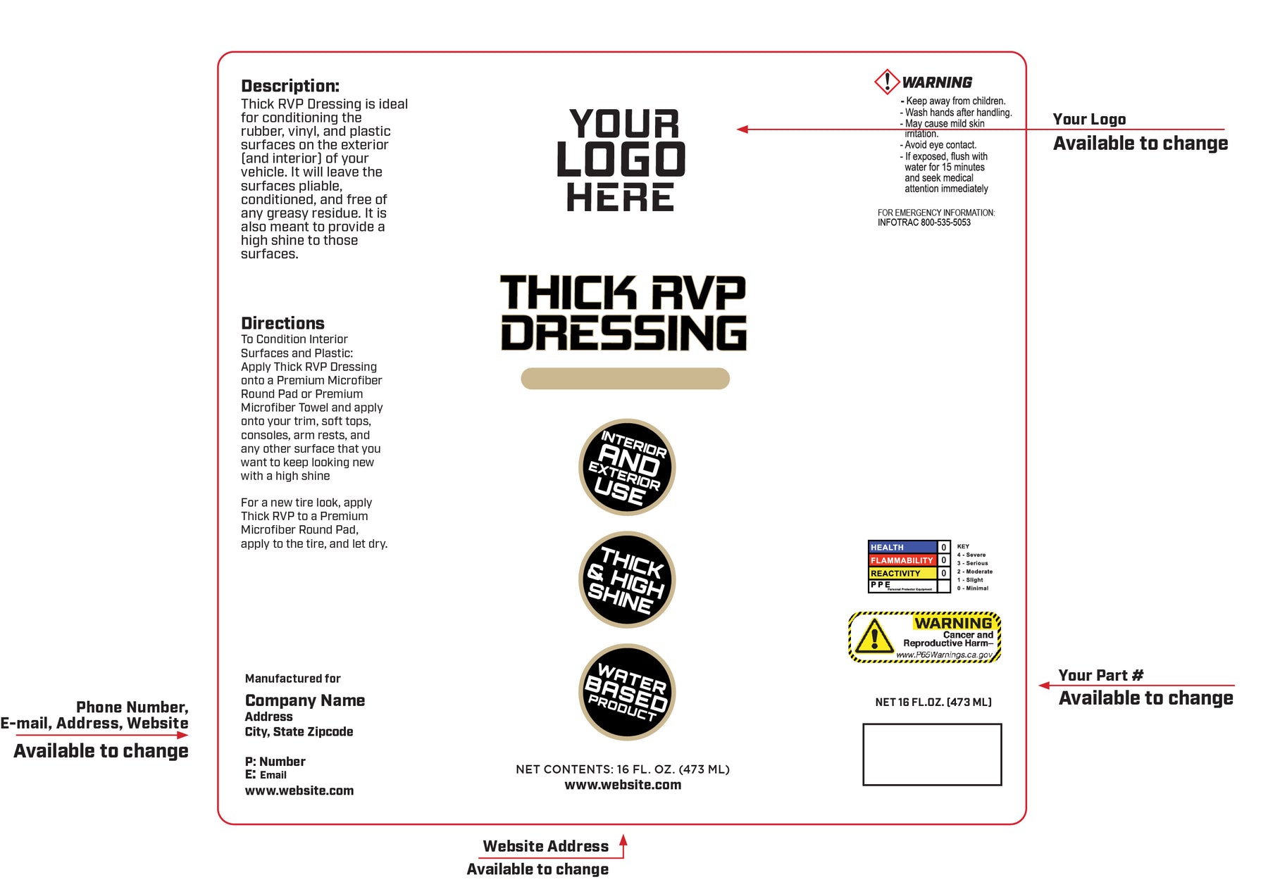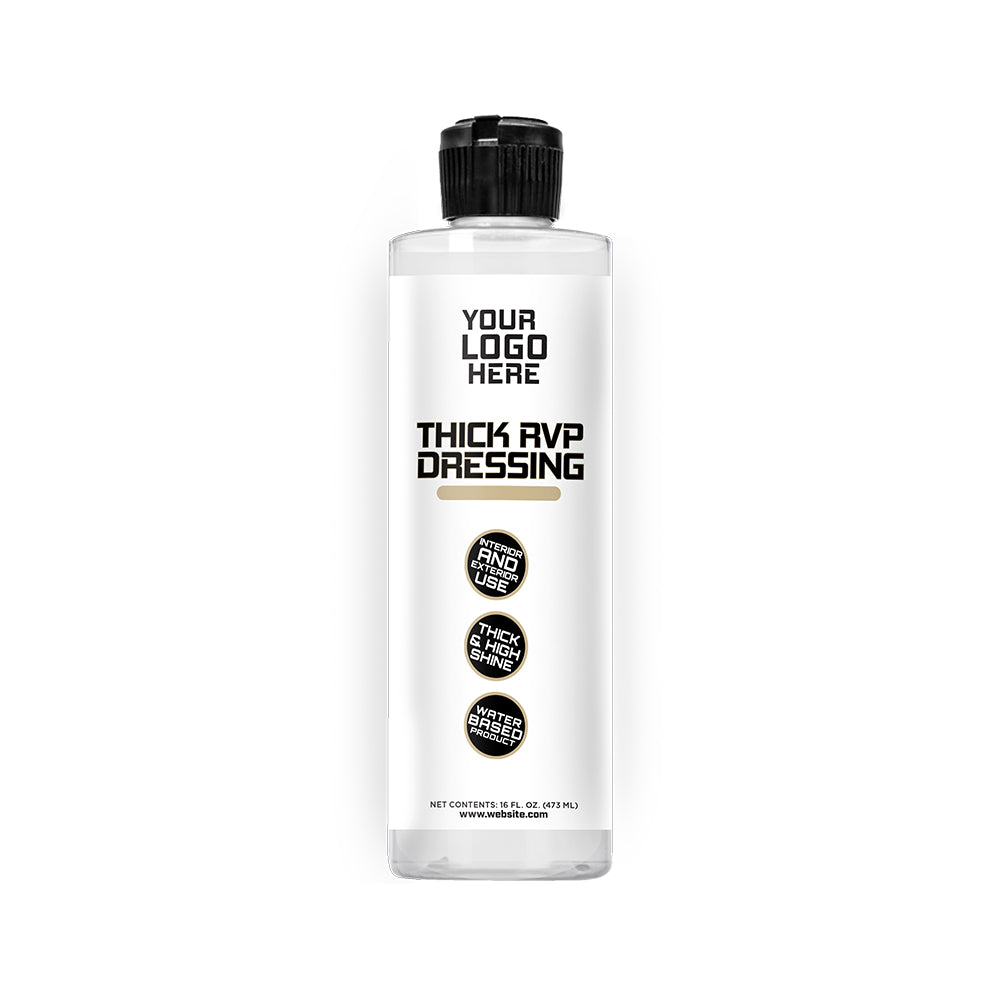 This is our thick formulation of our water based dressing that can be used on tires, rubber, vinyl & plastic. Typically thick dressings are used on applicators or brushes (depending on the surface its being applied to) to avoid over-spray or sling. This is a high silicone, long lasting dressing that is widely considered as one of the best dressings on the market! This dressing will leave your surface conditioned, hydrated and free of any residue. This product is also fantastic for restoring faded plastics and is safe for using in the interior of the vehicle such as dashboard, doors, arm rests etc. This is a PREMIUM water based dressing that's versatile and long lasting!
