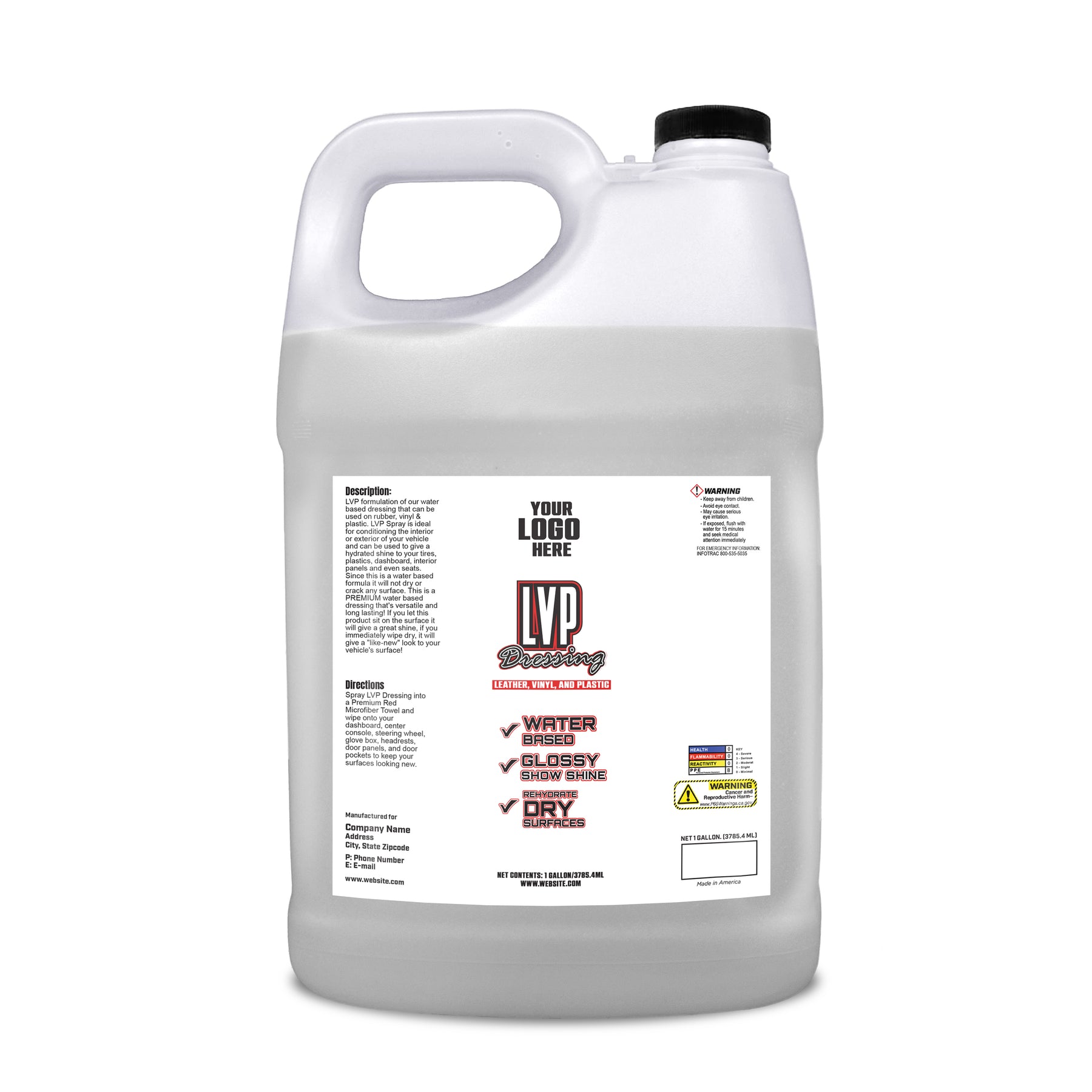 This is our versatile sprayable LVP formulation of our water based dressing that can be used on rubber, vinyl & plastic. LVP Spray is ideal for conditioning the interior or exterior of your vehicle and can be used to give a hydrated shine to your tires, plastics, dashboard, interior panels and even seats. Since this is a water based formula it will not dry or crack any surface. This is a PREMIUM water based dressing that's versatile and long lasting! If you let this product sit on the surface it will give a great shine, if you immediately wipe dry, it will give a "like-new" look to your vehicle's surface!